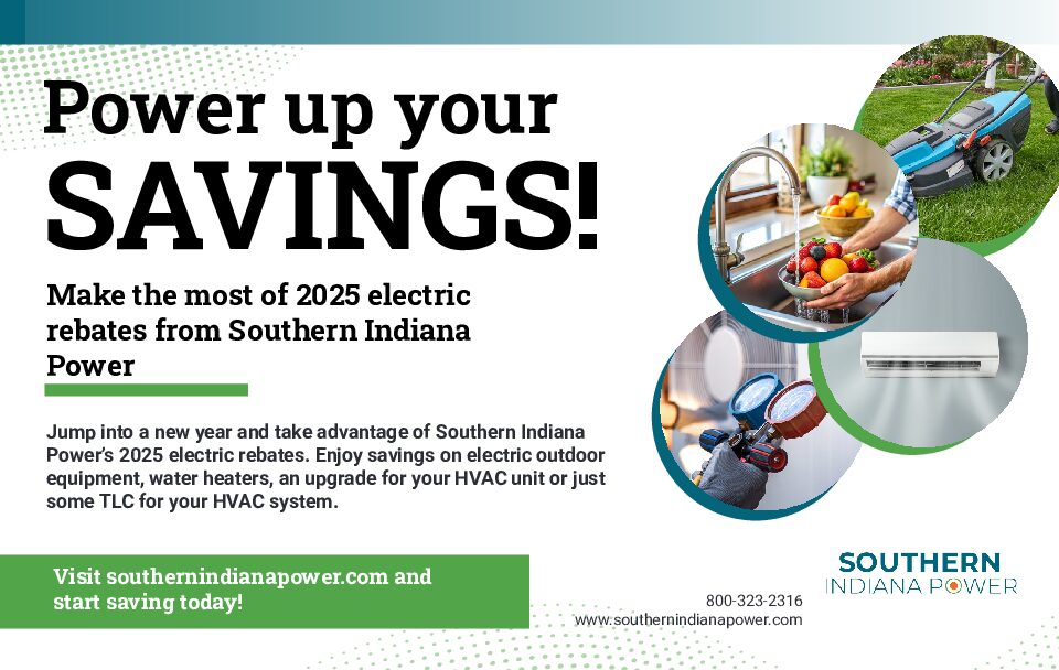 Login & Pay Your Bill Go to My Account Login now Register for Online AccessForgot Your Password?Make a One-Time Payment Start / Stop Service Rebates Safety & Outages Board Meetings Electric Vehicles Operation Round Up Spotlight Stories April 22, 2026 Now Hiring: Manager of Member Services April 21, 2025 Southern Indiana Power 2025 Annual Meeting April 16, 2025 Southern Indiana Power Announces 2025 Annual Meeting Voting Prize Winners April 9, 2025 2026 Rebates January 6, 2025 Winter Storm Blair Update July 11, 2024 LEGAL NOTICE View More Stories By The Numbers 0Installed Meters 0Miles of Line 0Members 0Years of Operation 0Employees 0Amount Donated to Communities Since 2009 0of Every $1 in 2025 Went to Power Supply Costs